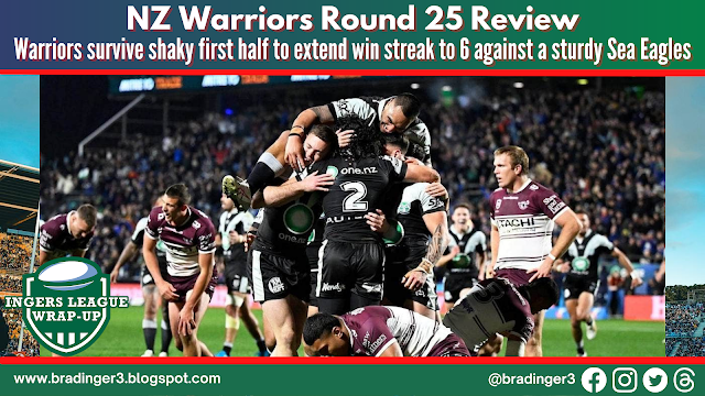 Lastly, the discipline let the Warriors down at times, the Titans came into this match fully intending to poke the bear, and the Warriors took the bait, which led to that farcical sin-binning which I believe was done not due to the action but in an attempt by Ben Cummins to regain control of the match. The Warriors do not want to be bullied by the opposition, of course. Still, if they show that they can be distracted by some grubbiness, you can expect teams to attempt to get under their skin in the finals to gain an advantage, so Warriors stand your ground but don't let it divert you from the task at hand.